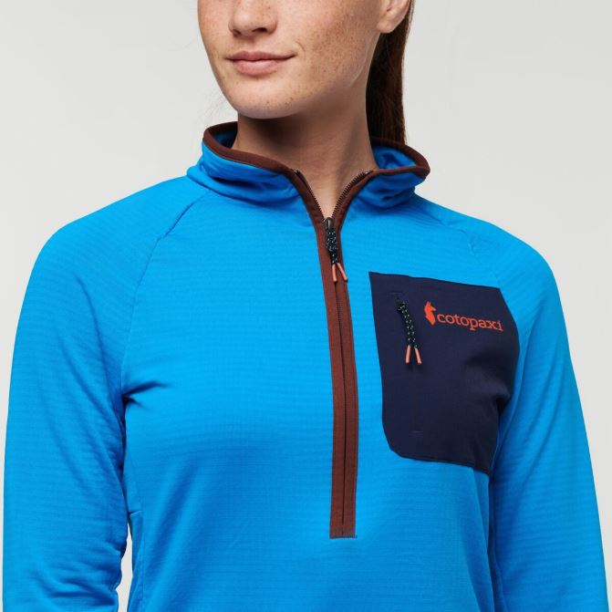 une Polaire Adaptée Au Mouvement, Le Pull Polaire à Demi-zip Cotopaxi Otero En Eau Salée Et Châtaigne Présente Une Silhouette Ajustée, Un Mélange De Polyester Recyclé, Un Dos En Grille Surélevée Pour Plus De Chaleur Et De Respirabilité, Et Des Fermetures à Glissière Dissimulées. Cette Polaire Technique Est Idéale Pour Les Randonnées Par Temps Frais Ou D'autres Aventures.